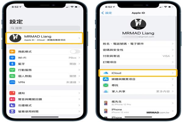 点选iOS“设定”>“AppleID(大头照)”>“iCloud”。