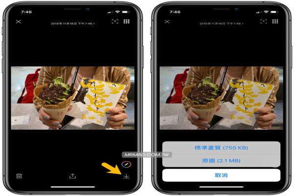 就可以打开LINE传送一张图片看看,自己再点击下载照片试试,就会出现两种画质,这也代表成功设定可以传原图高画质图档了!