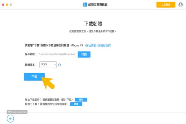 特别注意iMyFoneLockWiper是没办法保留设备内的照片和资料,会整个将设备清回原厂乾净状态,也不会解除寻找我的iPhone功能。比较适合不会使用iTunes操作用户,靠LockWiper超级懒人一键即可完成解锁密码步骤。
