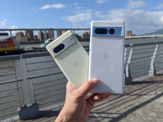 图左为6.3吋双镜头Pixel 7,相机外框采用雾面处理的铝合金;图右为6.7吋三镜头Pixel 7 Pro,相机外框采用亮面铝合金。