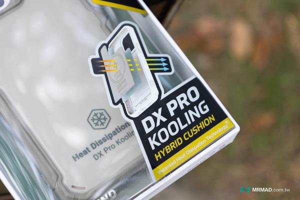 外盒包装也有巧思,往上掀开后,会让DXPROKOOLING军规防摔手机壳顶部如同展示柜往前抬,手机背板设计有浓厚工业风,背板会印上HeatDissipationTech(散热科技)字样。