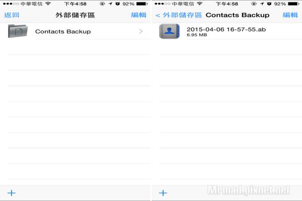 Step3. ▼那备份档会放置在哪呢?其实备份档会被储存在“外部储存区”>“ContactsBackup”底下,会是使用*.ab格式储存。