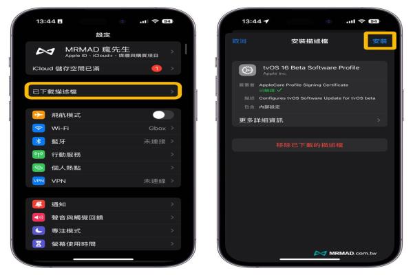 直接到iOS“设定”>“一般”>“描述档与装置管理”,点选“tvOS16BetaSoftwareProfile”描述档,点击“移除描述档”后,会跳出要求输入iPhone解锁密码,输入完成就可点击“移除”。