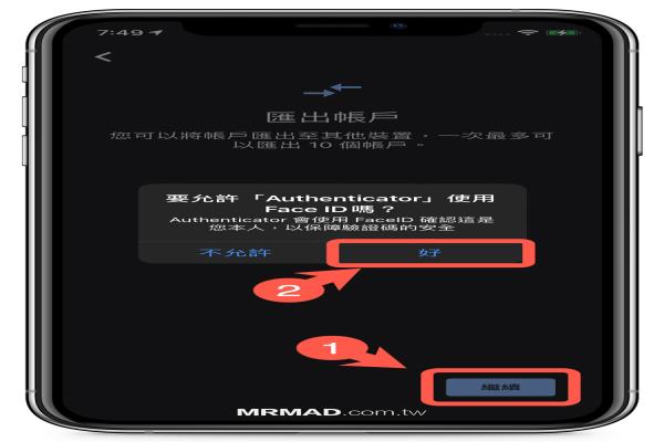 并且点选“继续”按钮后,iPhone会跳出要允许Authenticator使用FaceID/TouchID吗?点选“好”就会立即启动安全认证,这项功能主要是用来确认是否为设备本人。
